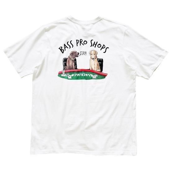 "Bass Pro Shops" Blackjack Playing Dog Tee (White)