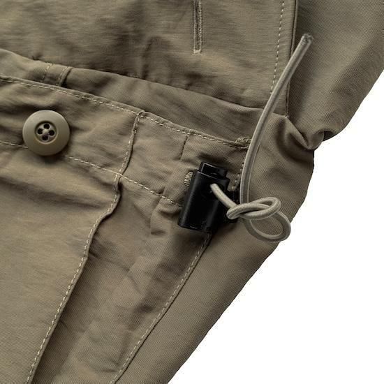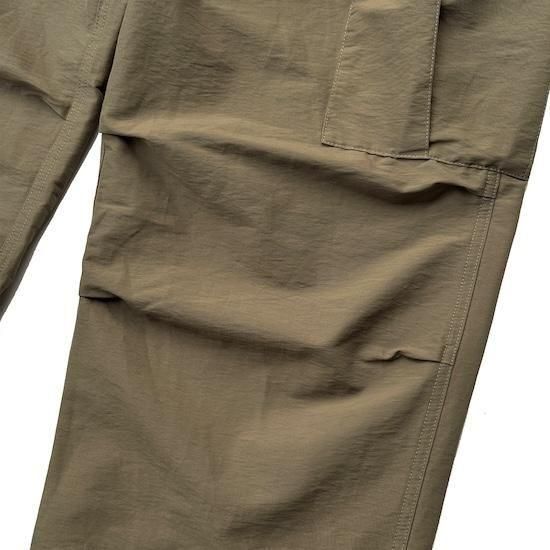 その動きやすさや利便性、目立たなさから海外買い付けの時のユニフォームとして愛用している軍パンをベースにシルエットや素材、 ディテールを改良して生まれた