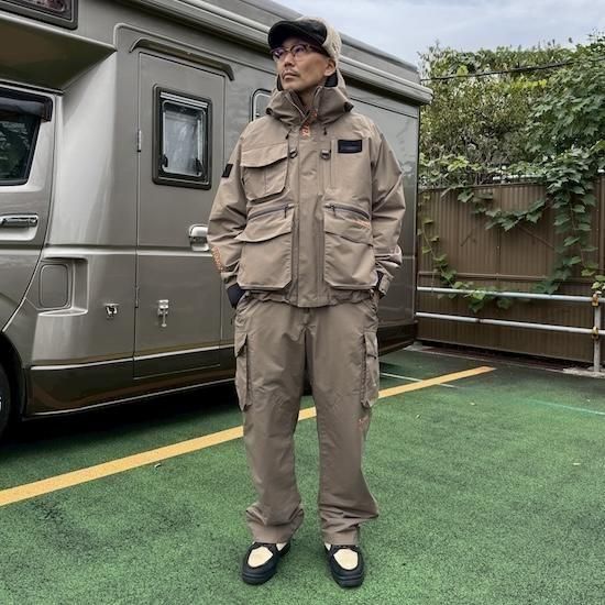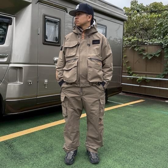 収納力の高さとゆったりとしたシルエットで都市部から旅行まで幅広いシーンで使えつつ本格的な釣りのフィールドにも対応可能なフィッシングジャケットをテーマに、光沢を抑えつつハリのあるシェルには黒タグの2レイヤー GORE-TEX を採用