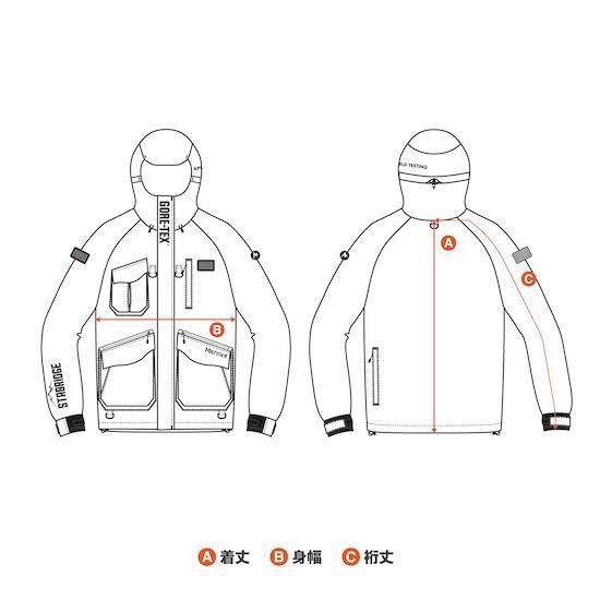 拘り抜いたシルエットは STABRIDGE × Marmot の GEN-1 AW PARKA をベースに腰巻きライフジャケットの着用を想定して着丈を調節しました